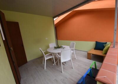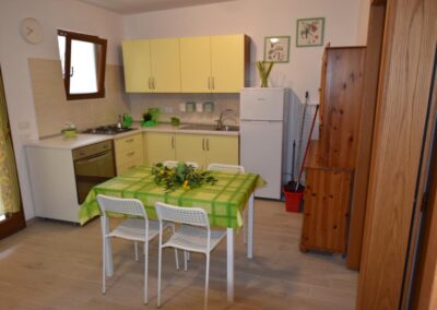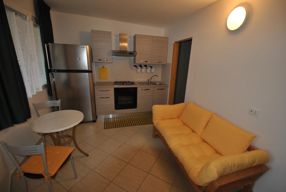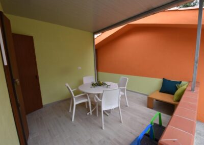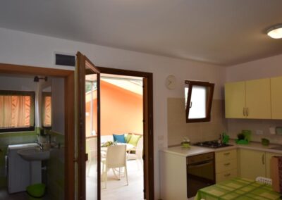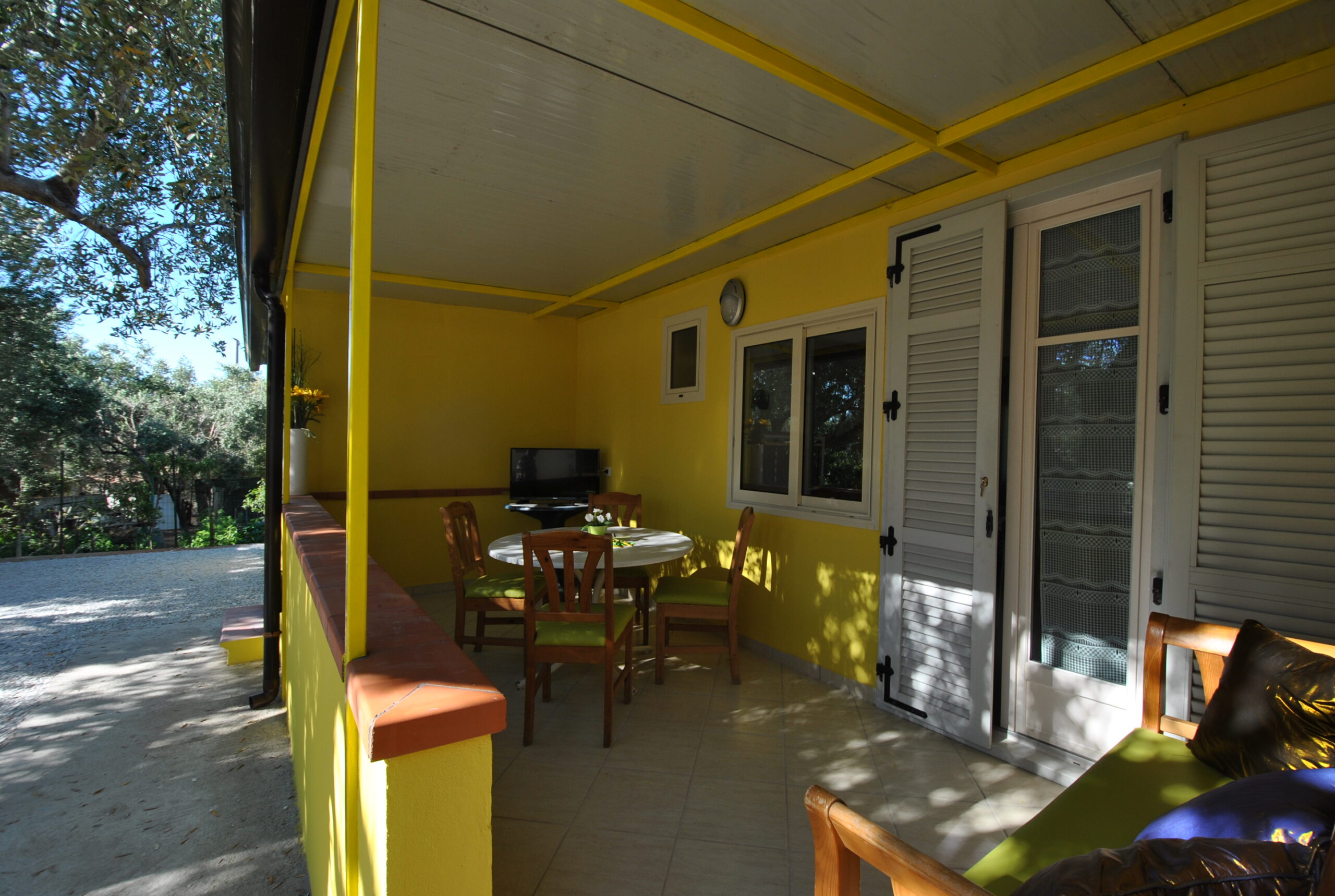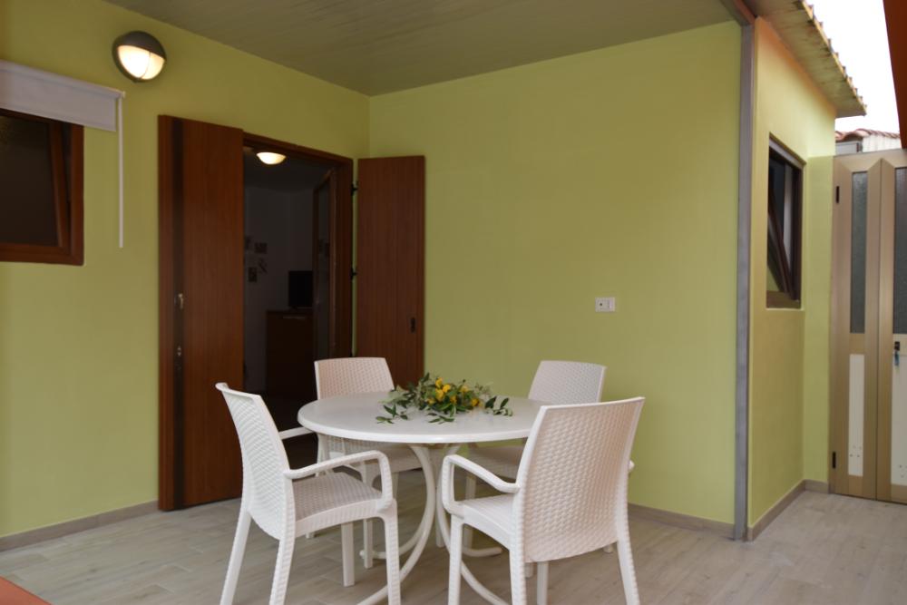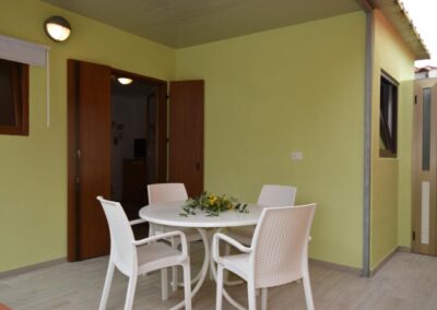 Bungalow per famiglia con due camere: una matrimoniale + una doppia, cucina interna, bagno con doccia e completo di lavatrice, terrazza e 1 parcheggio auto.