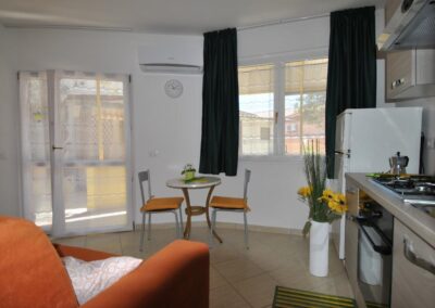 Speciale bungalow per piccola famiglia o coppia immerso negli ulivi secolari composto da una camera matrimoniale, cucina con divano letto, bagno finestrato con ampia doccia e completo di lavatrice, terrazza incantevole e 1 parcheggio auto.